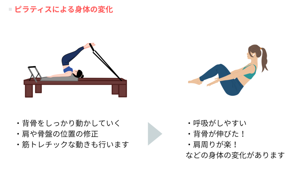 ピラティスを始めると、数回でこんな変化を感じる方が多いです。