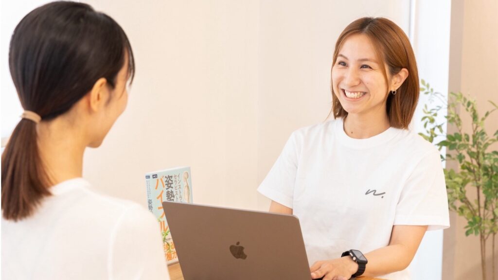Nピラティス柏店では、理学療法士の資格を持つインストラクターが、一人ひとりの体を丁寧に見ながらレッスンを行っています。