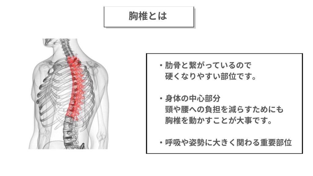 胸椎は、背骨の中でも特に姿勢・呼吸・動作に深く関わる重要な部位。