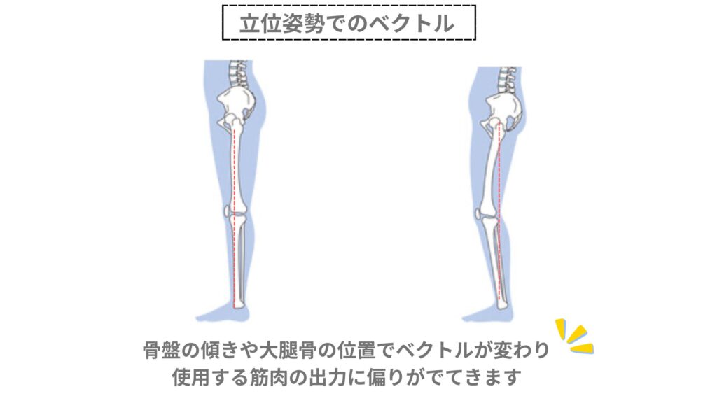 → 腰や太もも前に負担がかかり、お尻がサボる。 - 左右差(片脚重心)